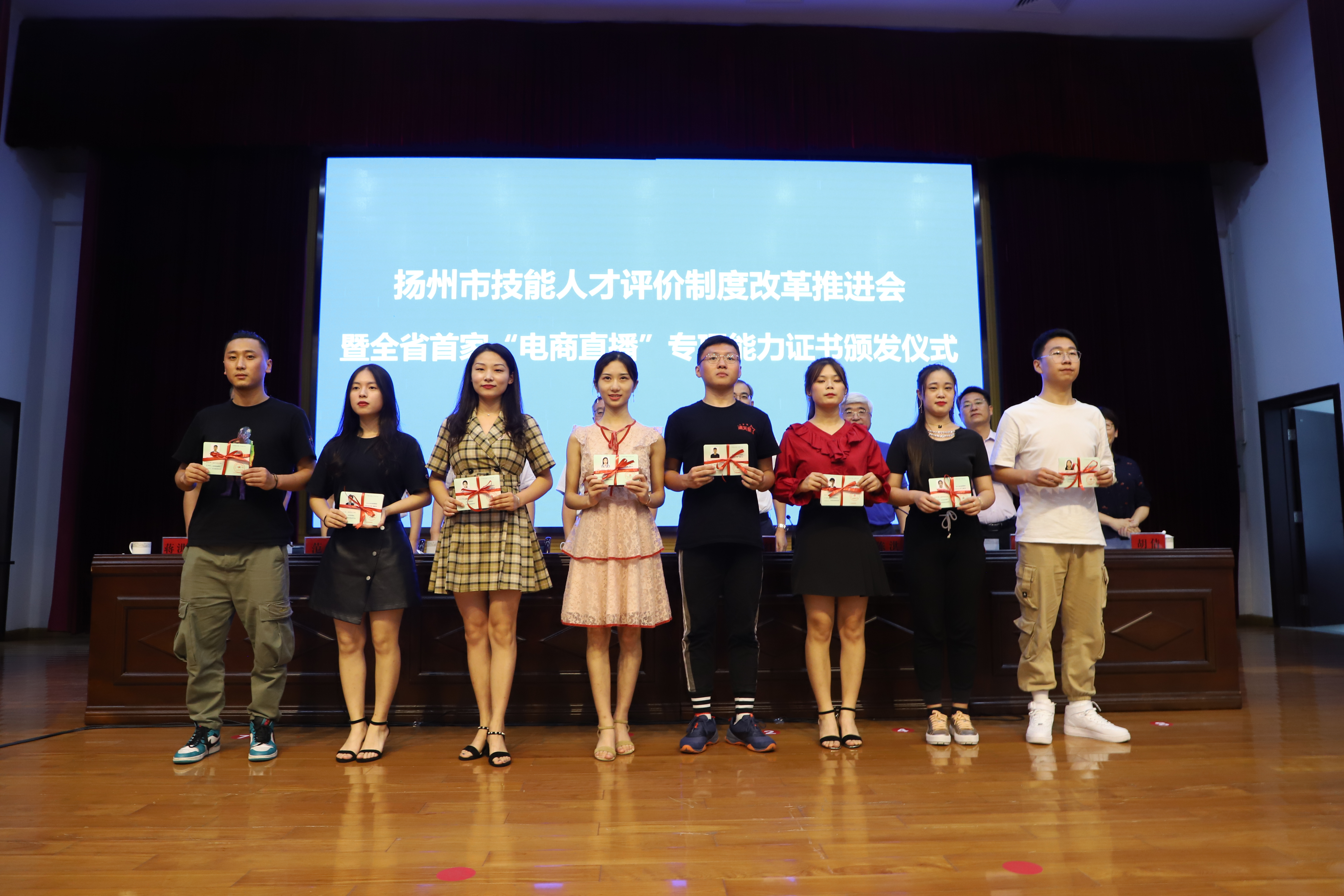 “吃葡萄容易,洗葡萄難,大家是不是和我有一樣的煩惱,來(lái)看看這個(gè)籃子……”在揚(yáng)州工業(yè)職業(yè)技術(shù)學(xué)院電商直播學(xué)院的直播教室里,參加江蘇省首批電商直播專項(xiàng)職業(yè)能力考核的主播們正在進(jìn)行直播實(shí)操考試。8月13日,揚(yáng)州市技能人才評(píng)價(jià)改革推進(jìn)會(huì)暨江蘇首家“電商直播”專項(xiàng)能力證書頒發(fā)儀式在揚(yáng)州工業(yè)職業(yè)技術(shù)學(xué)院舉行,江蘇首批26名主播拿到了揚(yáng)州市人社局頒發(fā)的“電商直播專項(xiàng)職業(yè)能力證書”。