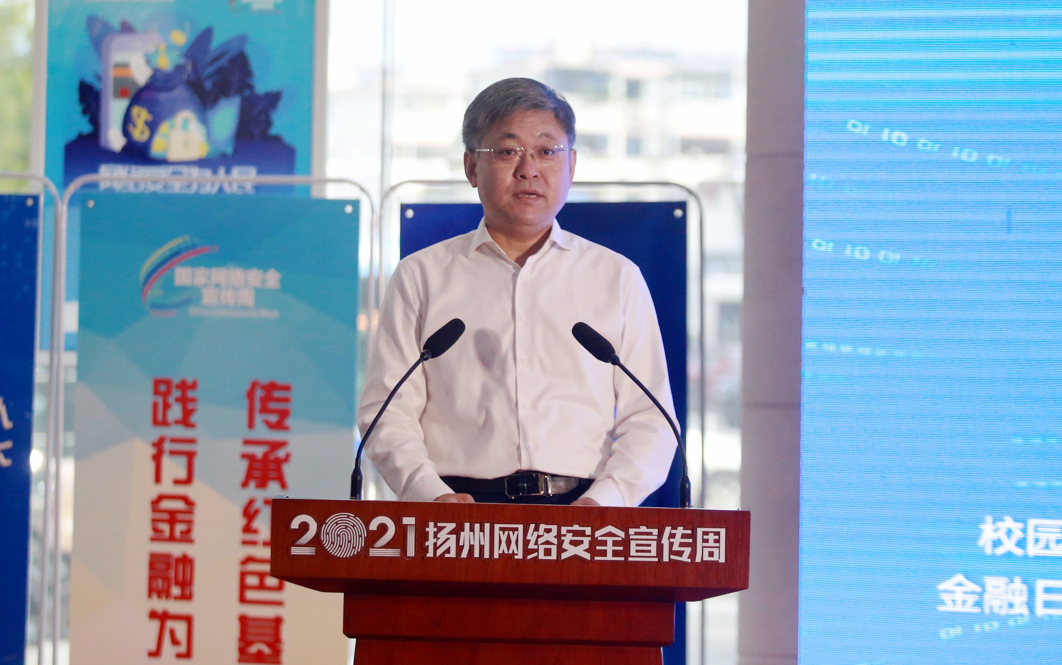 10月12日上午,2021年揚州網(wǎng)絡(luò)安全宣傳周在揚州工商銀行營業(yè)部正式啟動。今年的宣傳周活動從10月11日至17日,主題為“網(wǎng)絡(luò)安全為人民,網(wǎng)絡(luò)安全靠人民”。市委書記張寶娟對2021年揚州網(wǎng)絡(luò)安全宣傳周作出批示。副市長余珽出席開幕式并講話,市委宣傳部副部長、網(wǎng)信辦主任殷元松介紹了宣傳周整體活動安排。