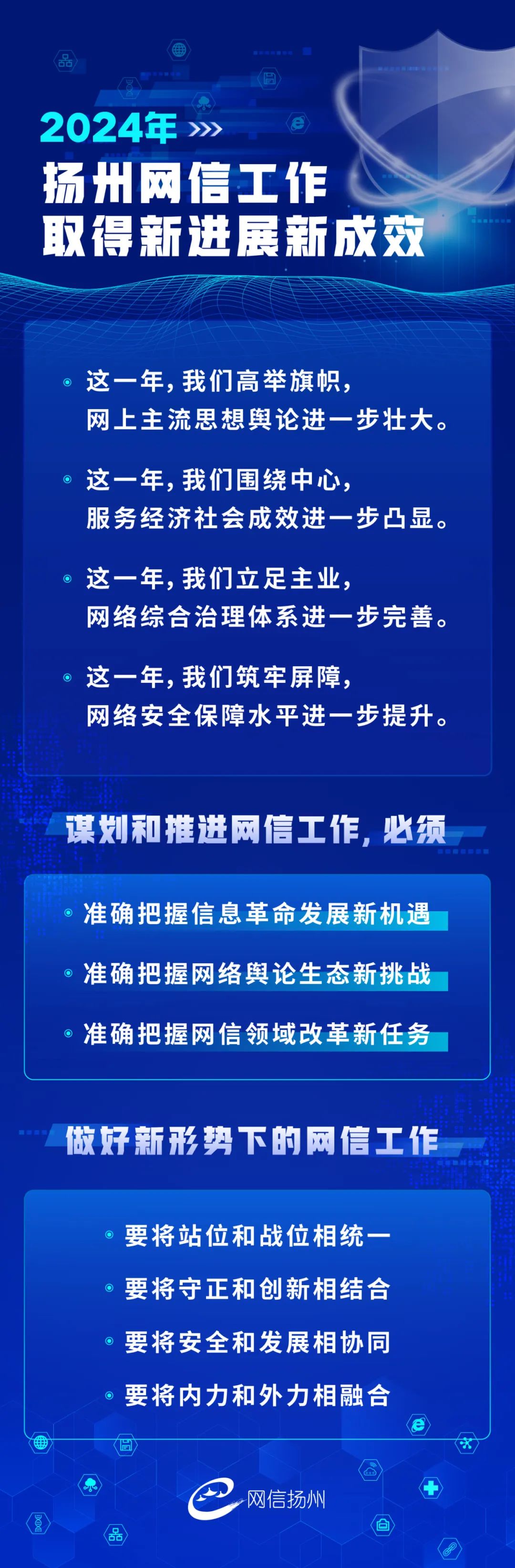 會議強(qiáng)調(diào),2025年是全面落實黨的二十屆三中全會精神的關(guān)鍵之年,是“十四五”規(guī)劃的收官之年,也是市委確定的“沖刺決勝年”。做好今年網(wǎng)絡(luò)安全和信息化工作,必須堅持以習(xí)近平新時代中國特色社會主義思想特別是習(xí)近平文化思想、習(xí)近平總書記關(guān)于網(wǎng)絡(luò)強(qiáng)國的重要思想為指導(dǎo),全面貫徹落實黨的二十大和二十屆二中、三中全會精神,深刻領(lǐng)悟“兩個確立”的決定性意義,增強(qiáng)“四個意識”、堅定“四個自信”、做到“兩個維護(hù)”,堅持穩(wěn)中求進(jìn)工作總基調(diào),圍繞“沖刺決勝年”總定位,完整準(zhǔn)確全面貫徹新發(fā)展理念,加快構(gòu)建新發(fā)展格局,堅持以旗幟引領(lǐng)方向、以改革激發(fā)動力、以統(tǒng)籌推動發(fā)展、以擔(dān)當(dāng)務(wù)求實效、以斗爭贏得主動、以嚴(yán)紀(jì)鍛造鐵軍,高質(zhì)量完成“十四五”網(wǎng)信規(guī)劃目標(biāo)任務(wù),為奮力推進(jìn)中國式現(xiàn)代化揚州新實踐提供強(qiáng)大網(wǎng)上輿論支持、可靠網(wǎng)絡(luò)安全保障和有力信息化支撐。