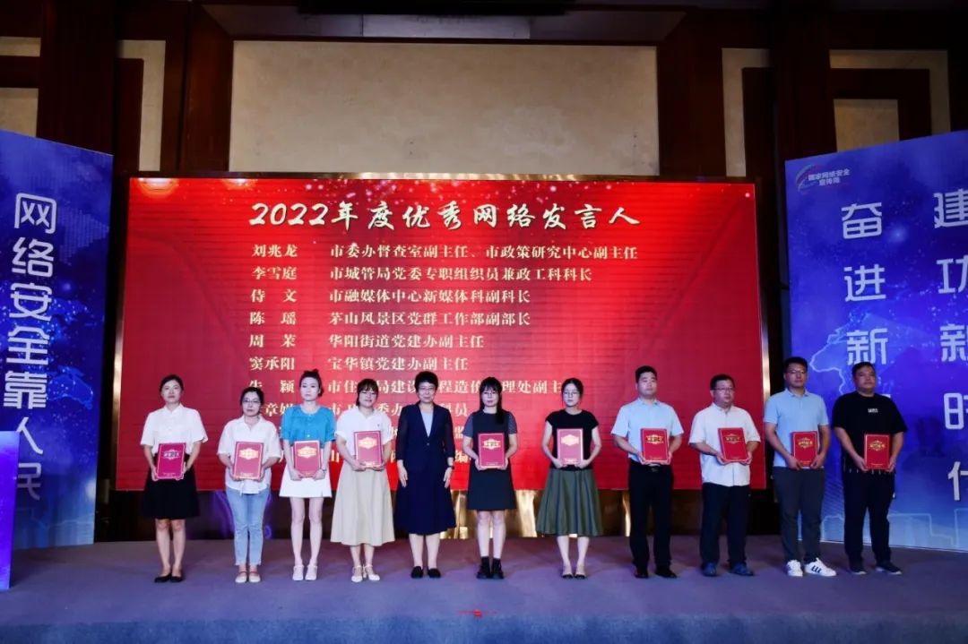 活動(dòng)現(xiàn)場(chǎng)為獲表彰的2022年第一期“句容好人”10名代表頒獎(jiǎng),為10名2022年度優(yōu)秀網(wǎng)絡(luò)發(fā)言人頒獎(jiǎng),為6家網(wǎng)絡(luò)安全應(yīng)急支撐隊(duì)伍頒發(fā)聘書,為句容市第三中學(xué)等10家“護(hù)苗”工作站授牌。同時(shí),網(wǎng)民代表現(xiàn)場(chǎng)發(fā)出網(wǎng)絡(luò)文明倡議,舉行了網(wǎng)絡(luò)安全知識(shí)微講座及紅色宣講等。據(jù)悉,今年句容市網(wǎng)絡(luò)安全宣傳周主要由啟動(dòng)儀式以及校園日、電信日、法治日、金融日、青少年日、個(gè)人信息保護(hù)日6個(gè)主題日組成,此外,句容市委網(wǎng)信辦還將開(kāi)展網(wǎng)絡(luò)安全知識(shí)在線答題、“兩用一心”網(wǎng)絡(luò)安全志愿服務(wù)、機(jī)關(guān)企事業(yè)單位工作郵箱專項(xiàng)整治行動(dòng)等線上線下活動(dòng),營(yíng)造“網(wǎng)絡(luò)安全為人民,網(wǎng)絡(luò)安全靠人民”的濃厚氛圍。