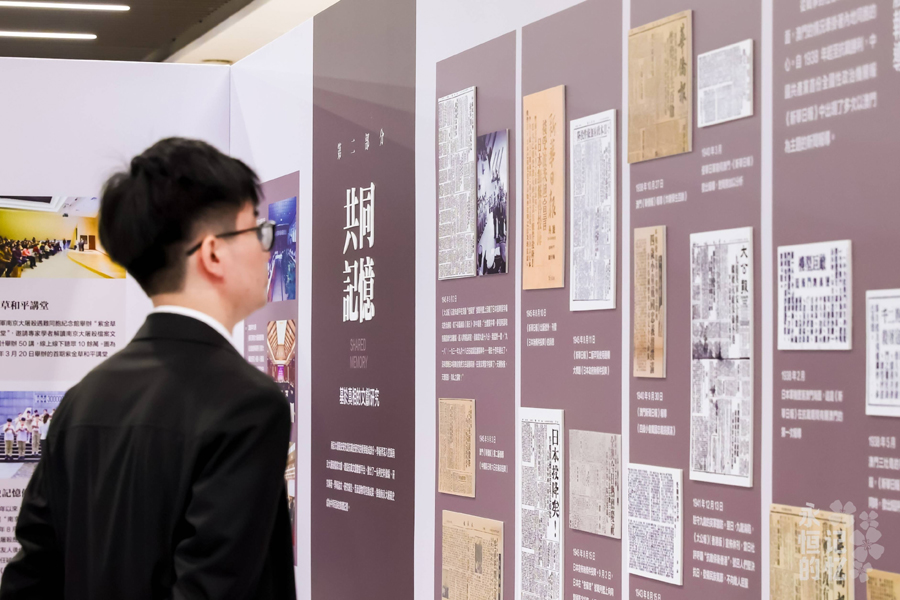 互動區(qū)內(nèi),以影片《南京照相館》為背景的“大好河山、寸土不讓”展墻讓參觀者駐足,展墻前展出了《南京照相館》中作為南京大屠殺案“京字第一號證據(jù)”的日軍暴行相冊。在象征和平的“紫金草”互動專區(qū),澳門師生紛紛手寫留言,祈愿和平。開展當(dāng)天,來自澳門勞校中學(xué)、澳門濠江中學(xué)等一批學(xué)校的師生代表進(jìn)行了現(xiàn)場觀展。