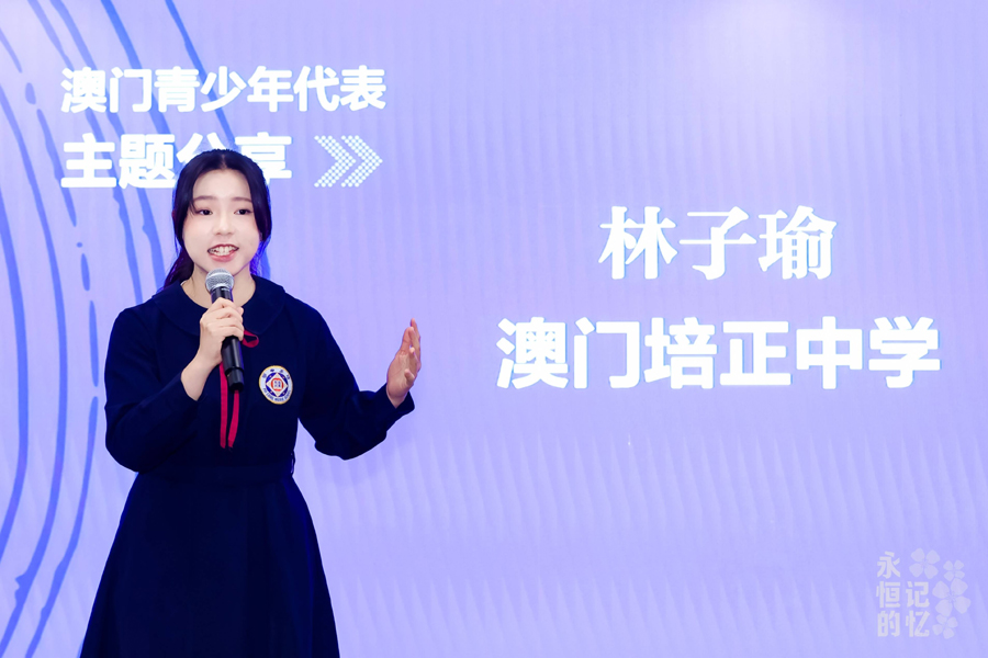 青少年代表、澳門培正中學(xué)林子瑜在主題演講中說,自己在觀看影片《南京照相館》以及九三閱兵后,加深了對“愛國奮斗”的理解。