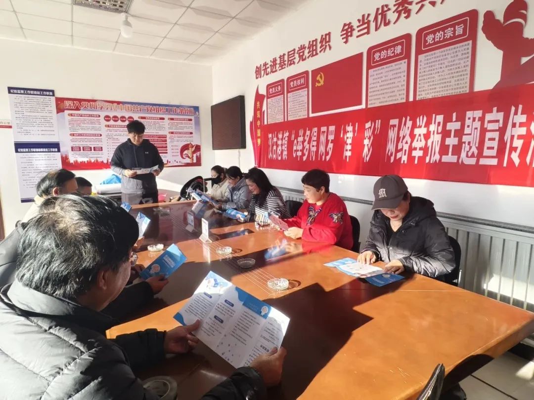 為進一步提升廣大群眾參與網(wǎng)絡舉報、打擊網(wǎng)絡謠言的積極性,增強對網(wǎng)上有害信息及網(wǎng)絡謠言的辯識能力和監(jiān)督意識,號召廣大群眾共建積極向上、健康清朗、文明和諧的網(wǎng)絡環(huán)境。近日,下伍旗鎮(zhèn)大興莊村組織開展“e舉多得 網(wǎng)羅‘津’彩” 網(wǎng)絡舉報主題宣傳活動。