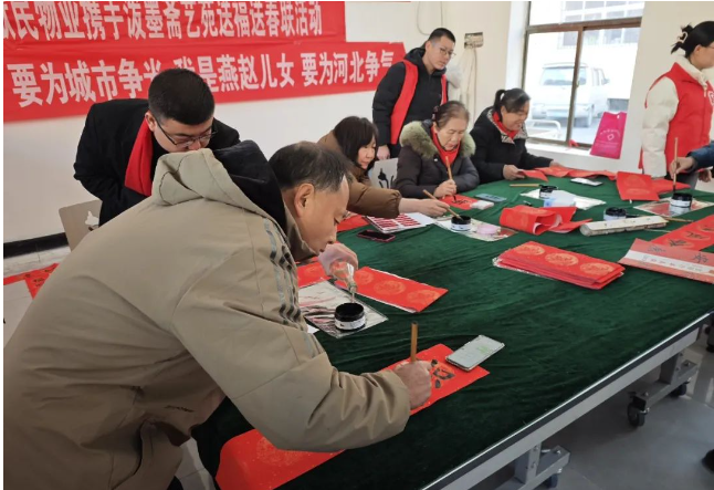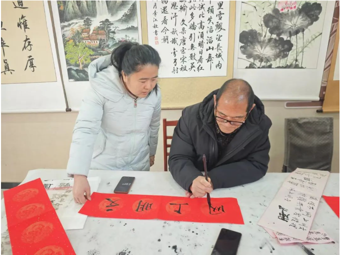 圖為南和區(qū)委網(wǎng)信辦邀請書法家為居民書寫春聯(lián)