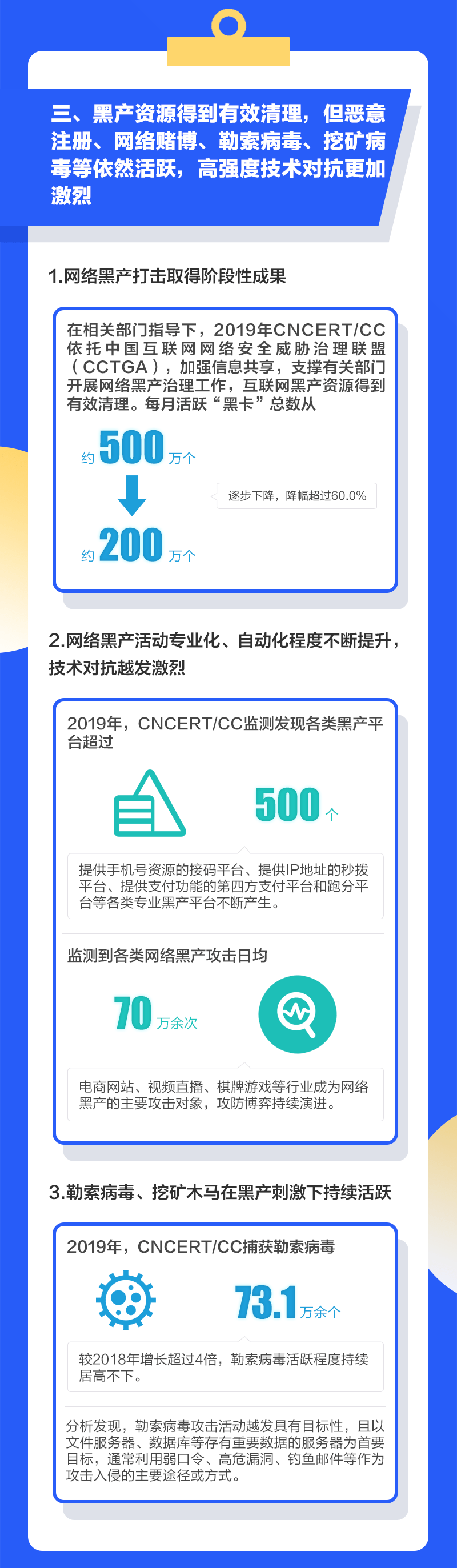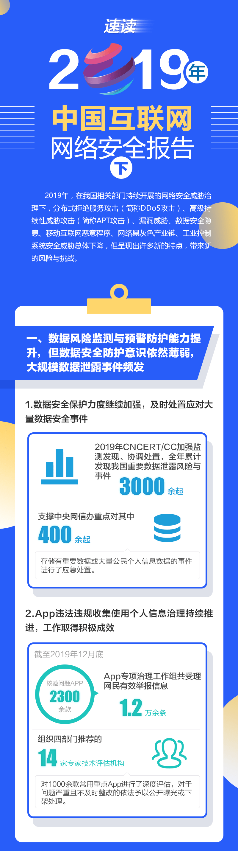 8月11日,國家互聯(lián)網(wǎng)應(yīng)急中心(CNCERT/CC)正式發(fā)布《2019年中國互聯(lián)網(wǎng)網(wǎng)絡(luò)安全報告》,內(nèi)容涵蓋我國互聯(lián)網(wǎng)網(wǎng)絡(luò)安全態(tài)勢分析、網(wǎng)絡(luò)安全監(jiān)測數(shù)據(jù)分析、網(wǎng)絡(luò)安全事件案例詳解、網(wǎng)絡(luò)安全政策和技術(shù)動態(tài)等多個方面。我們帶您一圖速覽2019年我國互聯(lián)網(wǎng)網(wǎng)絡(luò)安全狀況。