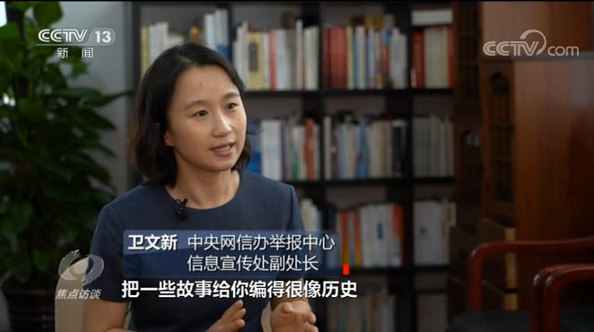 中央網(wǎng)信辦舉報(bào)中心信息宣傳處副處長衛(wèi)文新:“表現(xiàn)形式變得更加隱蔽,平臺(tái)上近年來色情、暴力沖擊力很強(qiáng),讓人容易直接察覺到的這種信息越來越少了,演變成一些自媒體文章通過杜撰和演繹手法,把故事編得很像歷史,不易察覺,人們也不易發(fā)現(xiàn)。”