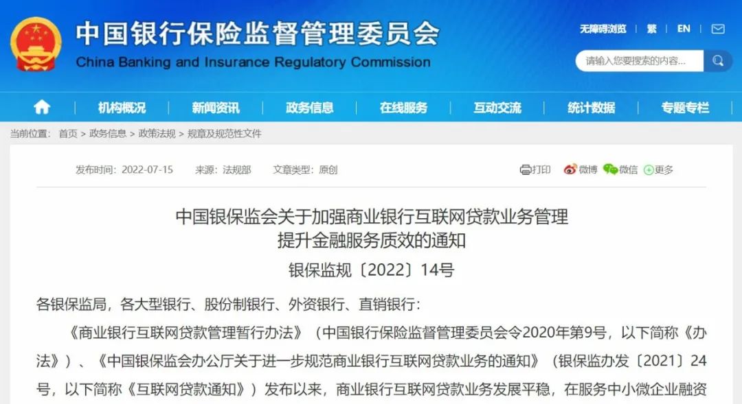 銀保監(jiān)會表示,通知的發(fā)布實施,有利于進一步完善商業(yè)銀行互聯(lián)網(wǎng)貸款監(jiān)管制度,規(guī)范業(yè)務合作行為,促進平臺經(jīng)濟規(guī)范健康發(fā)展。