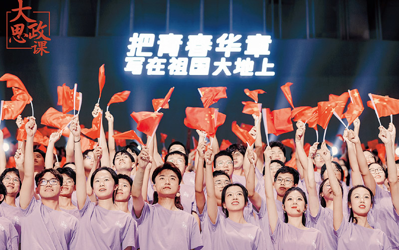 2023年10月14日,“把青春華章寫在祖國大地上”大思政課網(wǎng)絡主題宣傳和互動引導活動在四川大學舉行。圖為現(xiàn)場大學生齊唱歌曲《我愛你,中國》。 人民網(wǎng)、四川省委網(wǎng)信辦供圖
