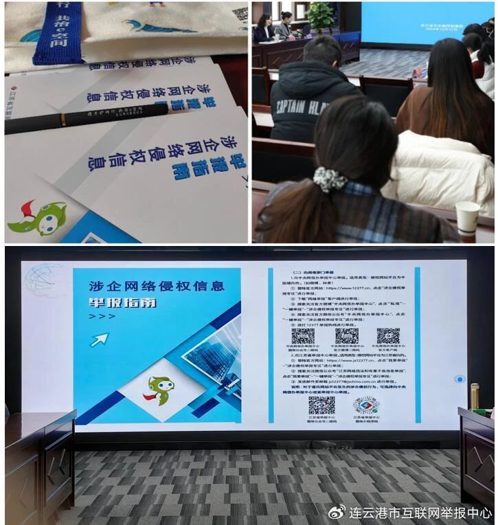 連云港市委網(wǎng)信辦工作人員走進(jìn)市交通控股集團,通過分享典型案例、發(fā)放《涉企網(wǎng)絡(luò)侵權(quán)信息舉報指南》、現(xiàn)場答疑等方式,普及涉企網(wǎng)絡(luò)侵權(quán)常見類型、舉報受理范圍、舉報方式渠道等知識,引導(dǎo)企業(yè)充分認(rèn)識網(wǎng)絡(luò)侵權(quán)行為,增強防范應(yīng)對能力,積極舉報涉企違法違規(guī)內(nèi)容,合理合法維護企業(yè)在網(wǎng)絡(luò)空間的合法權(quán)益。