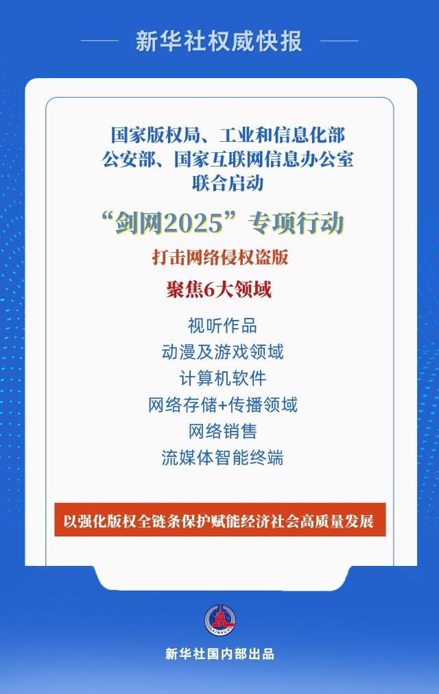 新華社北京5月16日電(記者 史競男)國家版權局、工業(yè)和信息化部、公安部、國家互聯(lián)網信息辦公室四部門近日聯(lián)合啟動打擊網絡侵權盜版“劍網2025”專項行動,這是全國持續(xù)開展的第21次打擊網絡侵權盜版專項行動。