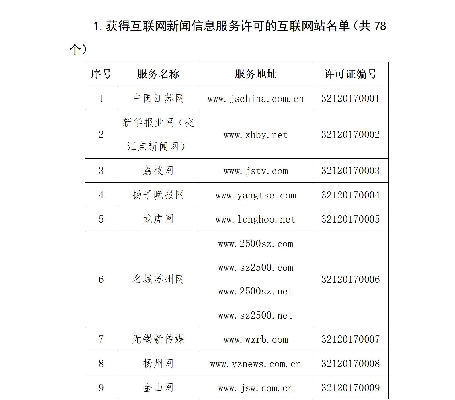 江蘇省互聯(lián)網(wǎng)新聞信息服務(wù)單位許可信息公示
