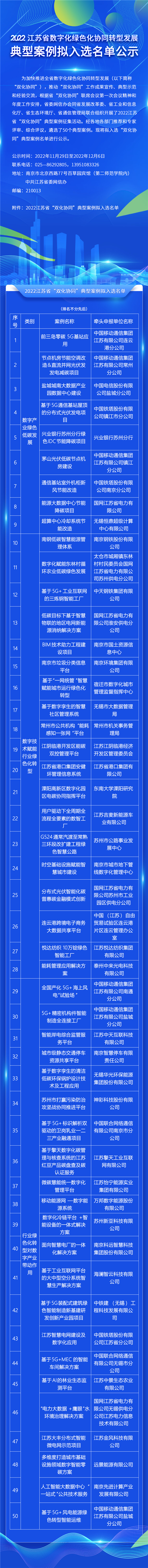 2022江蘇省數(shù)字化綠色化協(xié)同轉(zhuǎn)型發(fā)展典型案例擬入選名單公示