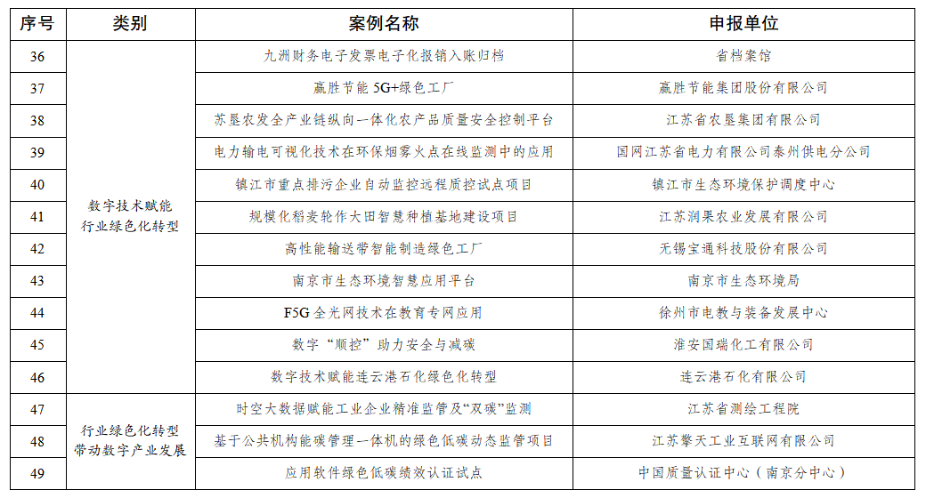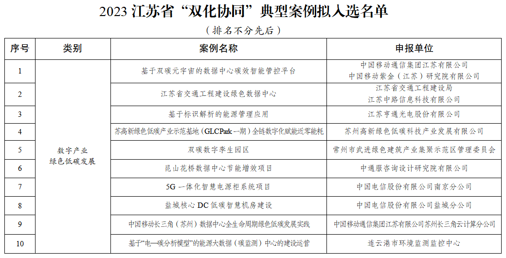為貫徹落實(shí)黨中央、國(guó)務(wù)院關(guān)于碳達(dá)峰碳中和、數(shù)字中國(guó)建設(shè)的決策部署以及省委、省政府有關(guān)工作要求,加快推進(jìn)全省數(shù)字化綠色化協(xié)同轉(zhuǎn)型發(fā)展(以下簡(jiǎn)稱“雙化協(xié)同”),加強(qiáng)“雙化協(xié)同”典型示范和經(jīng)驗(yàn)交流,助力數(shù)字江蘇和美麗江蘇建設(shè),省委網(wǎng)信辦會(huì)同省發(fā)展改革委、省工業(yè)和信息化廳、省生態(tài)環(huán)境廳、省通信管理局聯(lián)合組織開(kāi)展了2023江蘇省“雙化協(xié)同”典型案例征集活動(dòng)。經(jīng)各地各有關(guān)部門推薦、形式審核、專家評(píng)審和綜合審議,遴選了56個(gè)典型案例?,F(xiàn)將擬入選2023江蘇省“雙化協(xié)同”典型案例名單進(jìn)行公示。