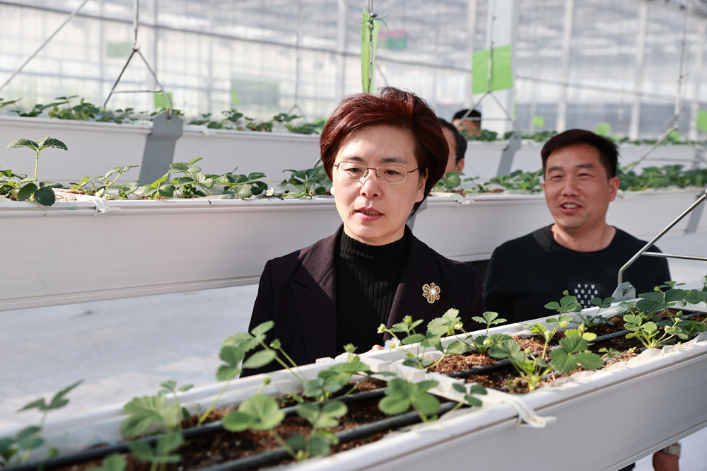 在梁寨鎮(zhèn)數(shù)字農(nóng)場(chǎng),徐纓詳細(xì)了解玻璃溫室大棚建設(shè)情況、智能溫室運(yùn)營(yíng)的技術(shù)手段和農(nóng)作物生長(zhǎng)情況,鼓勵(lì)工作人員充分利用物聯(lián)網(wǎng)、大數(shù)據(jù)等數(shù)字化手段,把現(xiàn)代農(nóng)業(yè)發(fā)展好。