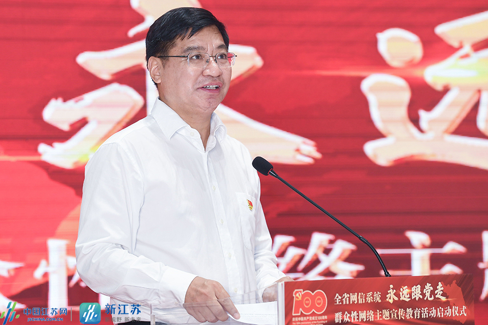 新江蘇·中國江蘇網(wǎng)訊 5月19日,由中共江蘇省委網(wǎng)信辦主辦,江蘇省互聯(lián)網(wǎng)行業(yè)聯(lián)合會、各設(shè)區(qū)市市委網(wǎng)信辦、新華報業(yè)傳媒集團中國江蘇網(wǎng)、新江蘇客戶端承辦的全省網(wǎng)信系統(tǒng)“永遠跟黨走”群眾性網(wǎng)絡(luò)主題宣傳教育活動啟動儀式在新華報業(yè)傳媒集團舉行。省委網(wǎng)信辦主任兼省委宣傳部副部長徐纓,新華日報社黨委書記、社長,新華報業(yè)傳媒集團董事長雙傳學(xué),省委網(wǎng)信辦副主任胡連生,新華日報社黨委委員、副總編輯,中國江蘇網(wǎng)董事長、總編輯陸峰及省委網(wǎng)信辦相關(guān)處室負責人,各設(shè)區(qū)市市委網(wǎng)信辦相關(guān)負責人,勞模代表,網(wǎng)絡(luò)人士、網(wǎng)絡(luò)媒體代表參加了啟動儀式。