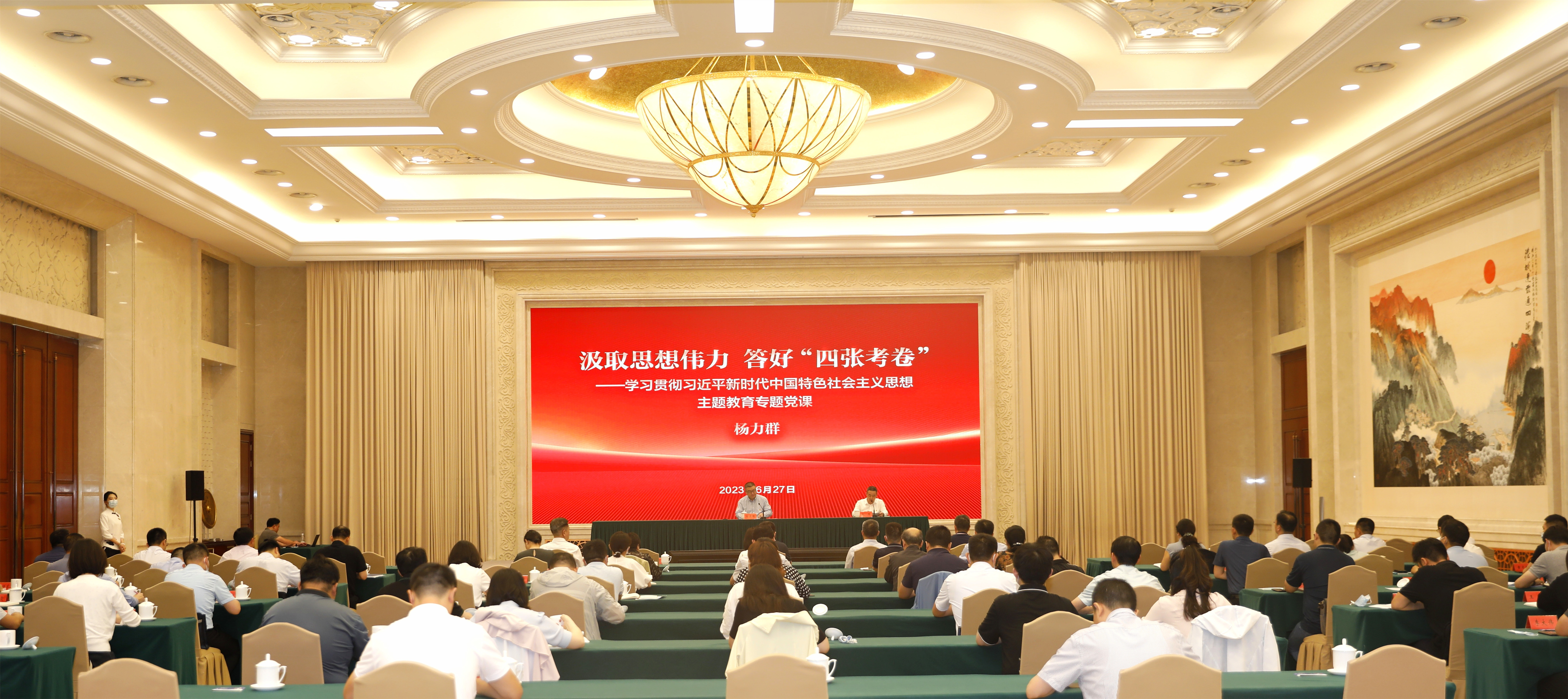 根據(jù)主題教育工作安排,6月27日,省委宣傳部副部長、省委網(wǎng)信辦主任楊力群圍繞學(xué)習(xí)貫徹習(xí)近平新時代中國特色社會主義思想,落實省委工作要求,以“汲取思想偉力 答好‘四張考卷’”為題,為省委網(wǎng)信辦機關(guān)全體黨員干部講專題黨課,深刻學(xué)習(xí)領(lǐng)悟習(xí)近平新時代中國特色社會主義思想,牢記總書記殷殷囑托,認(rèn)真落實總書記要求,在新的趕考之路上答好政治考卷、時代考卷、網(wǎng)信考卷、模范機關(guān)考卷。