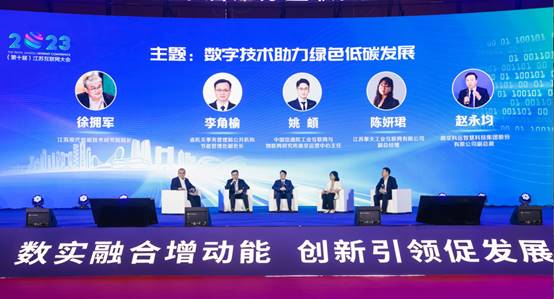 在圓桌對(duì)話環(huán)節(jié),江蘇現(xiàn)代低碳技術(shù)研究院院長(zhǎng)徐擁軍與行業(yè)龍頭企業(yè)代表一起暢談數(shù)字化綠色化協(xié)同轉(zhuǎn)型發(fā)展帶來(lái)的機(jī)遇和挑戰(zhàn)。他們一致認(rèn)為,數(shù)字化和綠色化是全球經(jīng)濟(jì)社會(huì)轉(zhuǎn)型發(fā)展的重要趨勢(shì),應(yīng)該在綠色化發(fā)展中堅(jiān)持?jǐn)?shù)字化驅(qū)動(dòng),在綠色化轉(zhuǎn)型中抓住數(shù)字化先機(jī)。