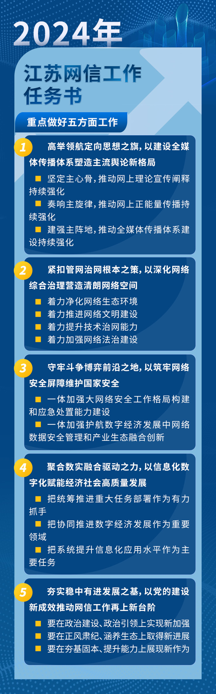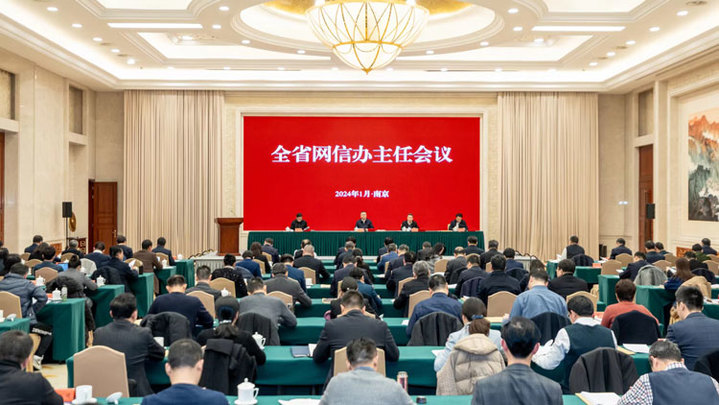 會議強(qiáng)調(diào),2024年是中華人民共和國成立75周年,是實現(xiàn)“十四五”規(guī)劃目標(biāo)任務(wù)的關(guān)鍵一年,是習(xí)近平總書記提出網(wǎng)絡(luò)強(qiáng)國戰(zhàn)略目標(biāo)10周年和我國全功能接入國際互聯(lián)網(wǎng)30周年。全省網(wǎng)信系統(tǒng)必須堅持以習(xí)近平新時代中國特色社會主義思想特別是習(xí)近平文化思想、習(xí)近平總書記關(guān)于網(wǎng)絡(luò)強(qiáng)國的重要思想為指導(dǎo),全面貫徹落實黨的二十大精神和習(xí)近平總書記對江蘇工作重要講話重要指示精神,貫徹落實習(xí)近平總書記關(guān)于網(wǎng)信工作的重要指示和全國網(wǎng)信工作會議精神,深刻領(lǐng)悟“兩個確立”的決定性意義,堅持穩(wěn)中求進(jìn)工作總基調(diào),完整準(zhǔn)確全面貫徹新發(fā)展理念,牢牢把握“四個走在前”“四個新”重大任務(wù),舉旗鑄魂強(qiáng)根基、服務(wù)大局強(qiáng)統(tǒng)籌、聚焦使命強(qiáng)擔(dān)當(dāng)、從嚴(yán)求實強(qiáng)隊伍,發(fā)展壯大網(wǎng)上主流價值、主流輿論、主流文化,全力推動網(wǎng)信事業(yè)高質(zhì)量發(fā)展,更好服務(wù)和支撐江蘇在推進(jìn)中國式現(xiàn)代化中走在前、做示范。