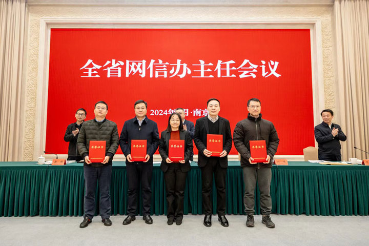 會議為2023年度全省網(wǎng)信工作創(chuàng)新案例和優(yōu)秀調(diào)研成果頒獎。國家安全中心江蘇分中心,南京、蘇州、常州、南通市委網(wǎng)信辦,省廣電總臺,徐工集團(tuán)等7家單位負(fù)責(zé)人作交流發(fā)言。