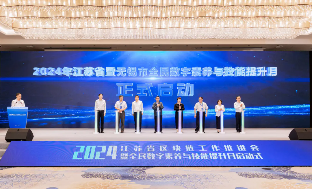 5月31日,2024年江蘇省區(qū)塊鏈工作推進會暨全民數(shù)字素養(yǎng)與技能提升月啟動式在無錫舉行。省委網(wǎng)信辦副主任趙明出席會議并講話,無錫市委常委、市委宣傳部部長李秋峰致辭。