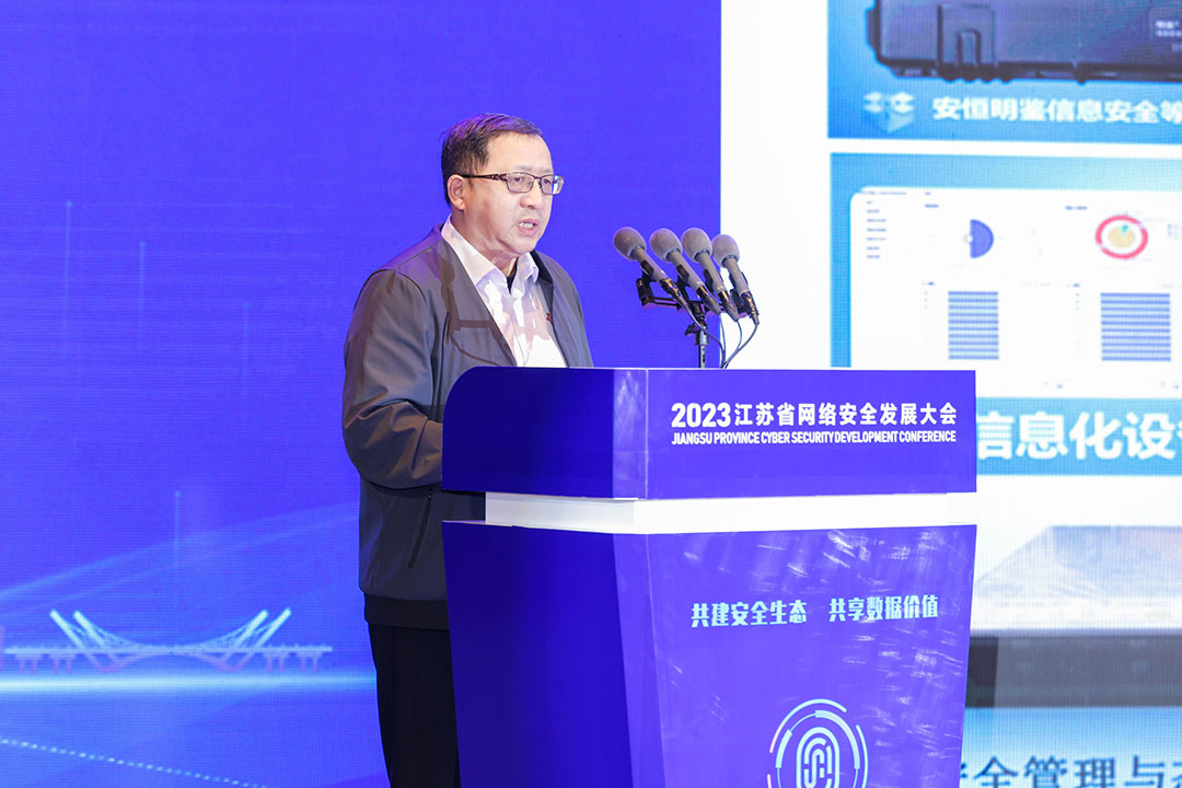 12月14日,2023年江蘇省網(wǎng)絡(luò)安全發(fā)展大會(huì)在無(wú)錫召開(kāi)。大會(huì)聚焦“共建安全生態(tài) 共享數(shù)據(jù)價(jià)值”主題,共話數(shù)字經(jīng)濟(jì)時(shí)代網(wǎng)絡(luò)安全融合發(fā)展之道。中央網(wǎng)信辦網(wǎng)絡(luò)數(shù)據(jù)管理局二級(jí)巡視員李欲曉,省委宣傳部副部長(zhǎng)、省委網(wǎng)信辦主任楊力群出席會(huì)議并致辭。上海市委網(wǎng)信辦總工程師楊海軍,安徽省委網(wǎng)信辦副主任、安全中心安徽中心主任許明峰應(yīng)邀參加活動(dòng)。省委網(wǎng)信辦副主任陳智,省教育廳副廳長(zhǎng)楊樹(shù)兵,省商務(wù)廳黨組成員、省自貿(mào)辦副主任湯大軍,省政務(wù)辦副主任趙明,國(guó)家互聯(lián)網(wǎng)應(yīng)急中心江蘇分中心主任巫鵬程,無(wú)錫市委常委、宣傳部部長(zhǎng)李秋峰出席會(huì)議。