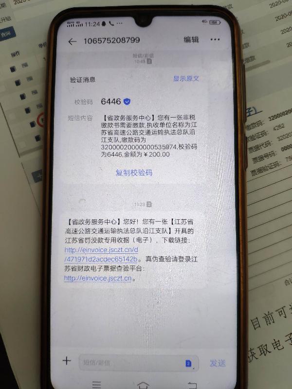 在大隊(duì)交通行政執(zhí)法人員的引導(dǎo)下,當(dāng)事人通過(guò)手機(jī)接收到的短信網(wǎng)址登錄江蘇省財(cái)政電子票據(jù)查驗(yàn)平臺(tái),順利獲取一張電子罰沒(méi)款票據(jù)。