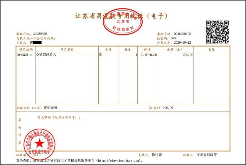 電子票據(jù)相對(duì)傳統(tǒng)的紙質(zhì)票據(jù)更快速,提高了工作效率,減少當(dāng)事人等待時(shí)間。通過(guò)系統(tǒng)產(chǎn)生一張載有違法當(dāng)事人相關(guān)信息、罰款金額和二維碼的繳款通知書(shū),只需要用手機(jī)“掃一掃”,違法當(dāng)事人成功繳納行政處罰罰沒(méi)款后,就能讀取電子票據(jù),可自行下載、打印票據(jù)、查驗(yàn)電子票據(jù)。