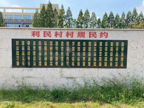 利民村的“利民記憶”長(zhǎng)廊,村子的點(diǎn)滴發(fā)展都記錄在這里,在“輝煌歷程”長(zhǎng)廊里,一個(gè)接一個(gè)榮譽(yù)榜映入眼簾。利民村的百家訓(xùn)、鄉(xiāng)賢榜、村規(guī)民約有條有理印在墻上,不僅如此,村民們對(duì)社會(huì)主義核心價(jià)值觀的認(rèn)同感更是刻在了心上。