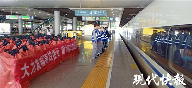 在浙江臺(tái)州,中國(guó)國(guó)家地理標(biāo)志產(chǎn)品黃巖蜜桔 " 坐 " 上了高鐵車(chē)廂,從田間地頭快速到達(dá)城市里的餐桌;在江蘇蘇州,聞名國(guó)內(nèi)外的陽(yáng)澄湖大閘蟹也借乘高鐵快遞的東風(fēng)," 橫行 " 四方。" 鐵路 + 電商 " 的 " 快上加快 " 優(yōu)勢(shì),架起了廠商、鄉(xiāng)村與消費(fèi)者之間快捷運(yùn)輸通道。