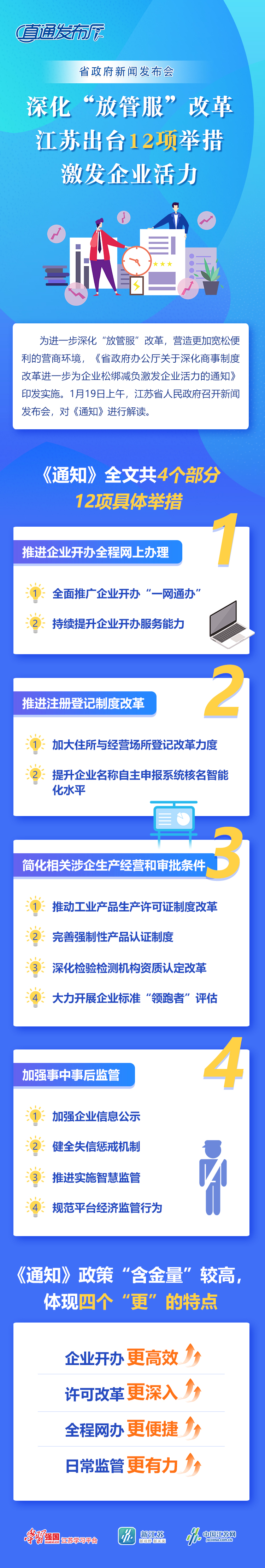 深化商事制度改革、進一步為企業(yè)松綁減負、激發(fā)企業(yè)活力,既是加快打造市場化法治化國際化營商環(huán)境的題中之義,也是更好統(tǒng)籌推進疫情防控和經(jīng)濟社會發(fā)展的必然要求。1月19日,江蘇省人民政府召開新聞發(fā)布會,對《省政府辦公廳關于深化商事制度改革進一步為企業(yè)松綁減負激發(fā)企業(yè)活力的通知》(以下簡稱《通知》)進行解讀。