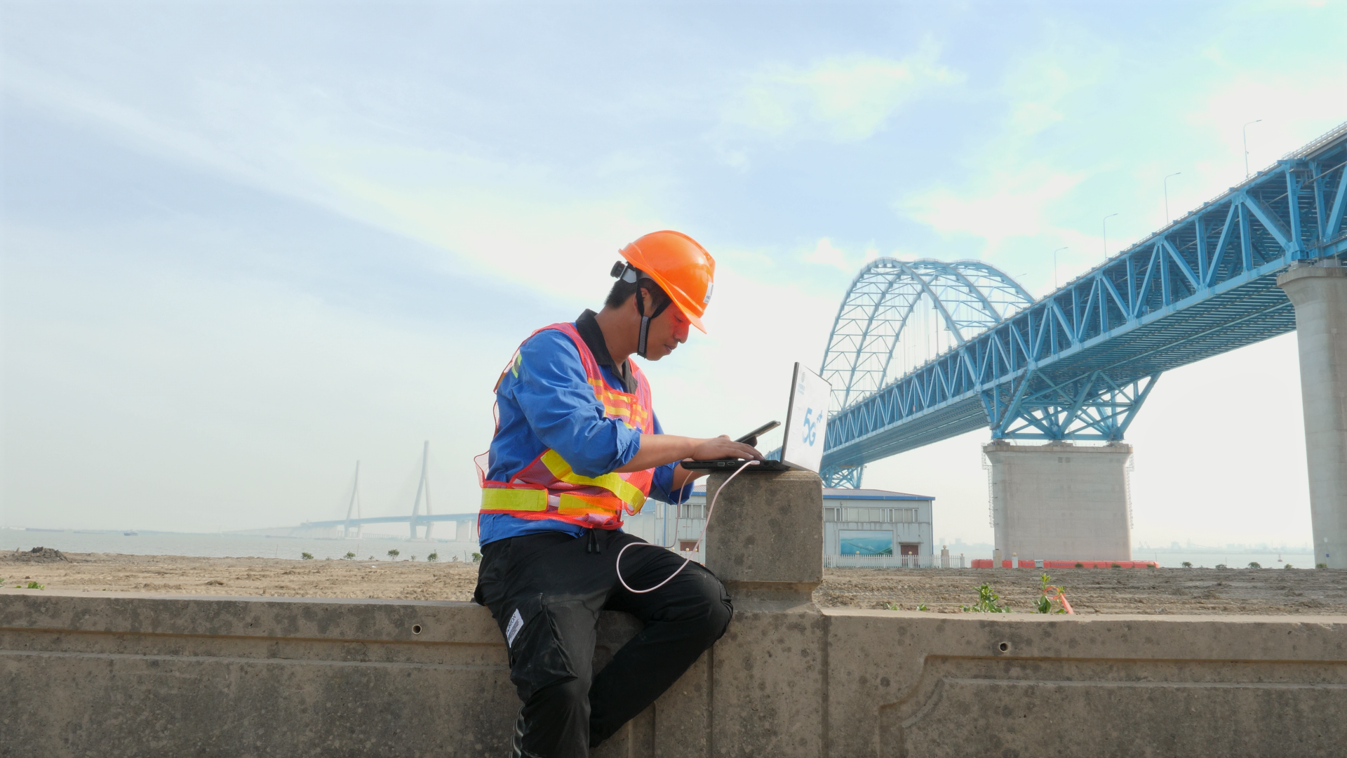 南通移動(dòng)工作人員在滬蘇通大橋調(diào)試5G網(wǎng)絡(luò)