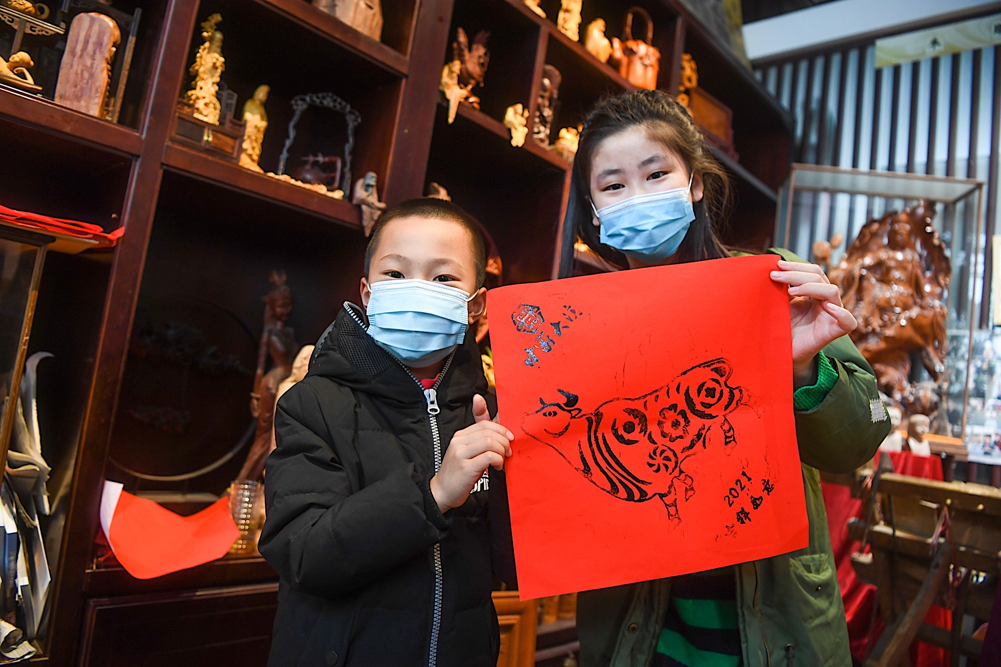 老門東、夫子廟、熙南里……春節(jié)期間,南京多個歷史街區(qū)花燈高掛,游人如織,年味濃濃。在大板巷歷史街區(qū),小學(xué)生孫思影現(xiàn)場拓印了一張出自國家級非遺傳承人馬萌青之手的雕版“福”字年畫,還購買了一盞精致的“金?!被?。