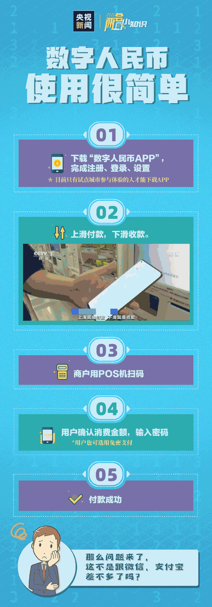 今年兩會,不少代表、委員對數(shù)字人民幣的發(fā)展提出建議,包括推進數(shù)字人民幣跨境支付應用等。數(shù)字人民幣與微信支付寶有何不同?簡單來說,數(shù)字人民幣是“錢”,微信、支付寶是“錢包”。目前我國多地正試點使用數(shù)字人民幣,具體怎么用?方便在哪?轉發(fā)了解!↓↓↓