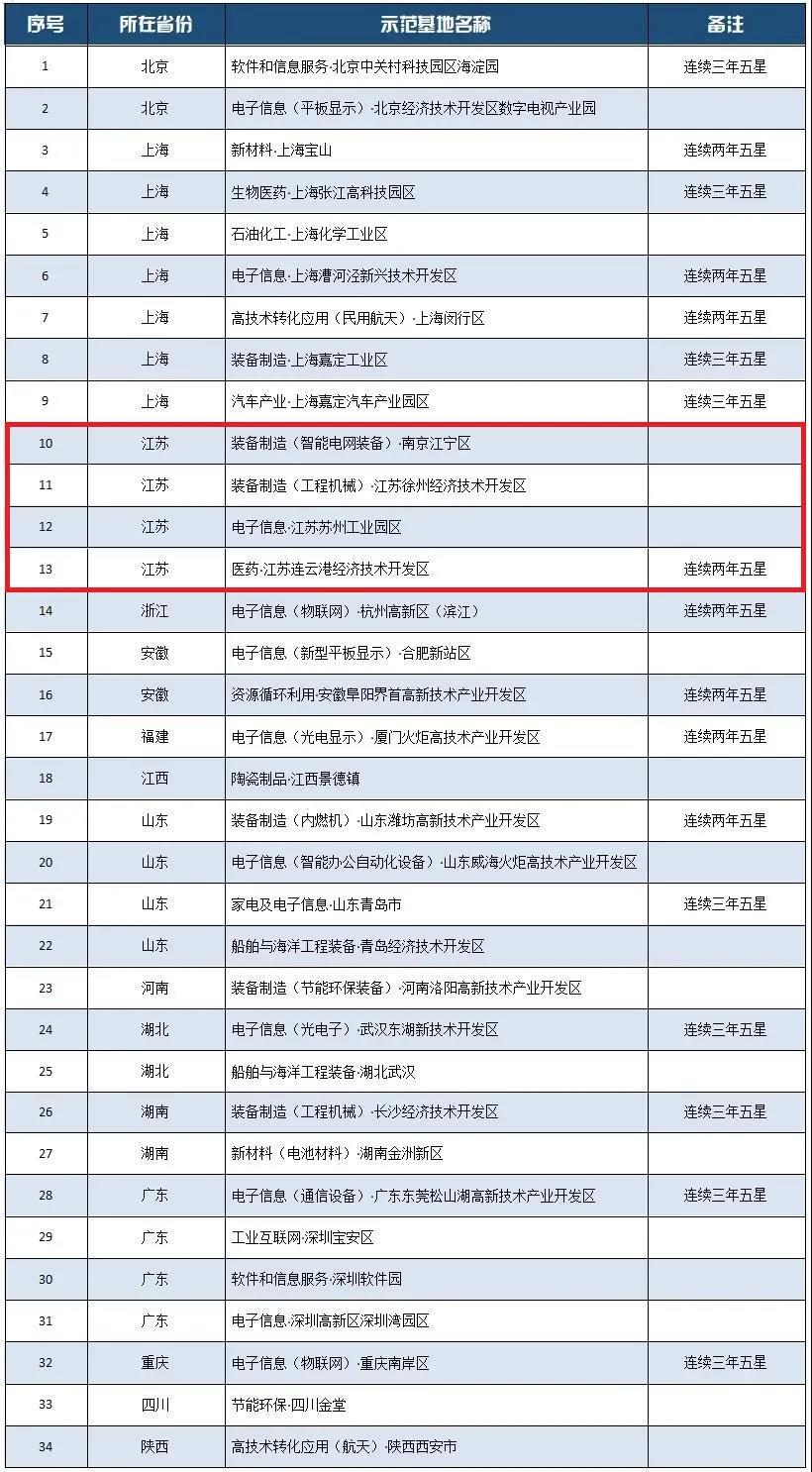此次江蘇的南京市江寧區(qū)裝備制造(智能電網(wǎng)裝備)、徐州經(jīng)濟(jì)開發(fā)區(qū)裝備制造(工程機(jī)械)、蘇州工業(yè)園區(qū)電子信息、連云港經(jīng)濟(jì)技術(shù)開發(fā)區(qū)醫(yī)藥等4家示范基地獲評(píng)2020年五星示范基地,數(shù)量?jī)H次于上海,與山東、廣東并列第二。其中,連云港經(jīng)濟(jì)技術(shù)開發(fā)區(qū)醫(yī)藥示范基地是我省唯一一家連續(xù)兩年獲評(píng)五星的示范基地。