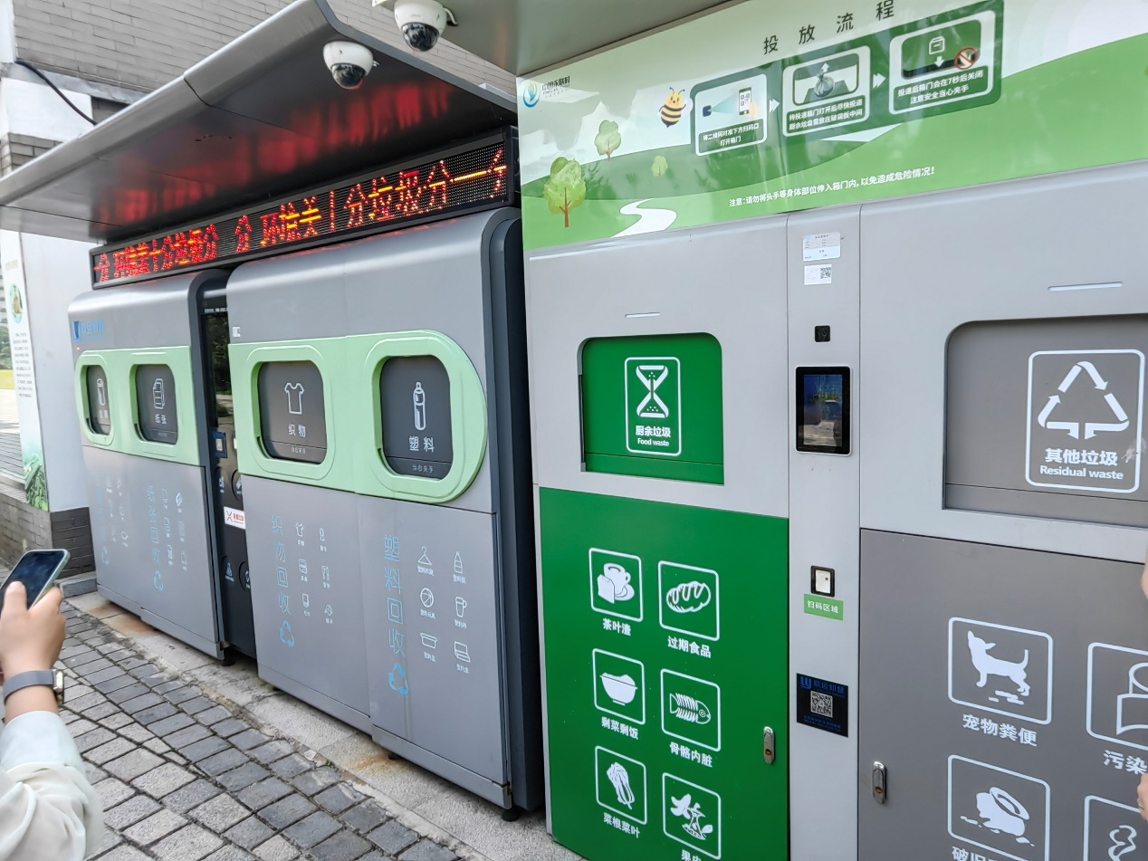 原來(lái),村里給每戶居民分發(fā)的垃圾袋上都有二維碼,投遞后網(wǎng)絡(luò)實(shí)時(shí)處理,獲得的信用積分可以兌換禮物,如有違規(guī)投遞,還可通過(guò)視頻攝像頭高清留痕。這樣的垃圾回收箱在城市里尚未普及,而在永聯(lián)村,已有100多個(gè),覆蓋全部4000余戶居民的生活場(chǎng)所。