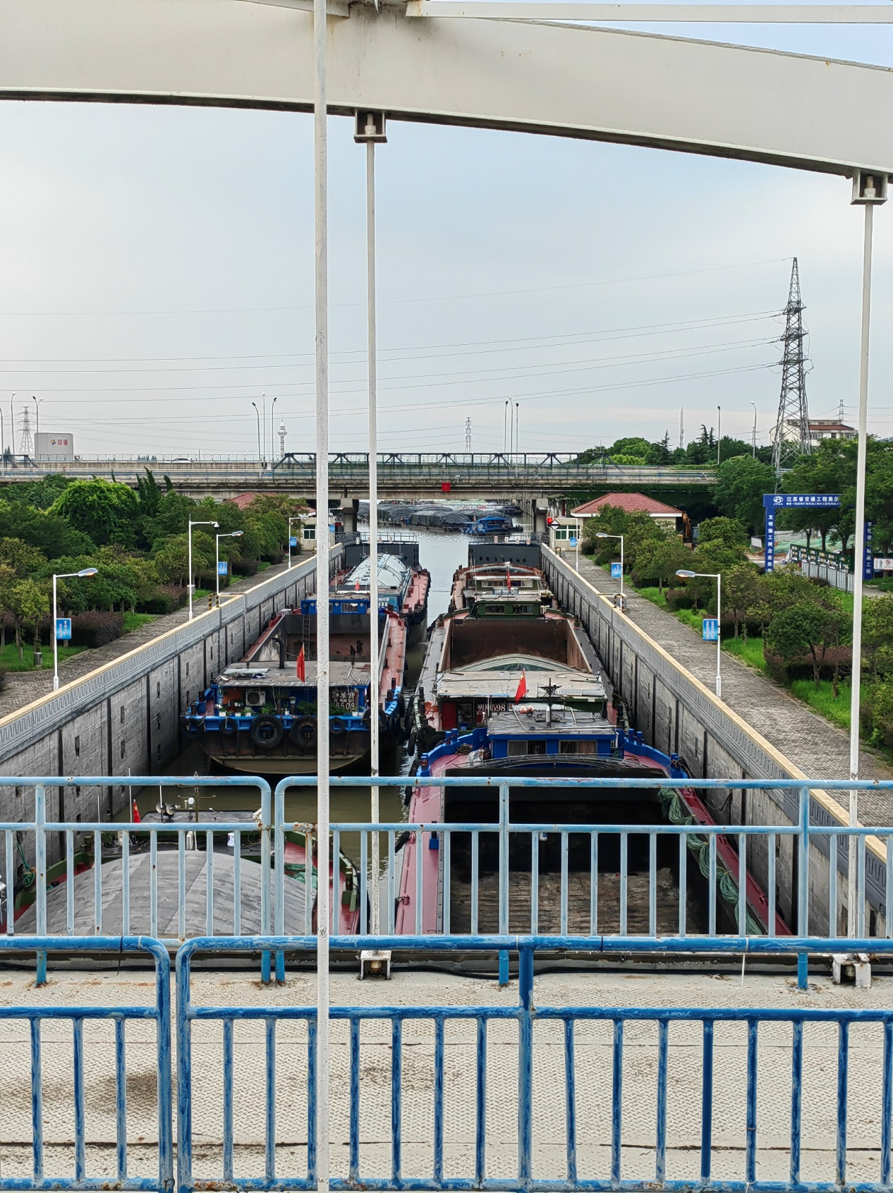 沿著長(zhǎng)江鎮(zhèn)江段進(jìn)入京杭運(yùn)河蘇南段,要通過(guò)“江南第一閘”諫壁船閘。7月27日傍晚5:20,記者來(lái)到諫壁二線船閘時(shí)看到,來(lái)自山東、安徽等地的船舶正在排隊(duì)過(guò)閘。