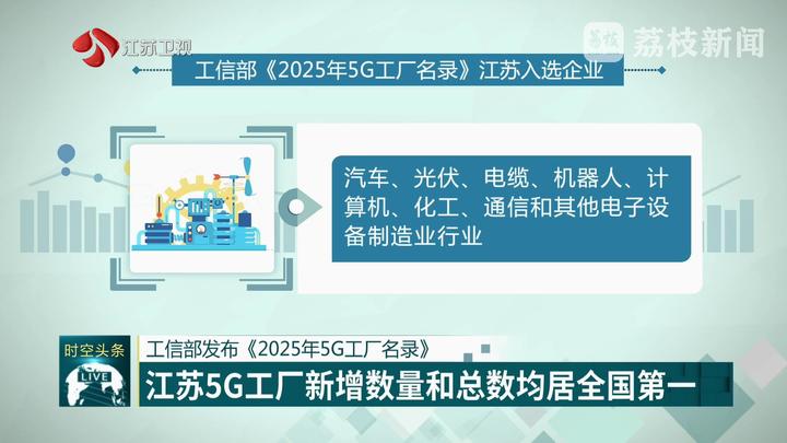 日前,工信部發(fā)布《2025年5G工廠名錄》,共48個(gè)行業(yè)、560個(gè)項(xiàng)目入選。其中江蘇91家工廠入圍,占全國總數(shù)的16.25%,新增數(shù)量和總數(shù)均居全國第一。