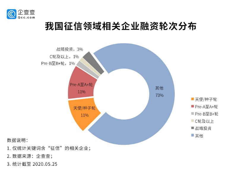 近500家征信相關(guān)企業(yè)項(xiàng)目獲得資本助力。其中,以并購、上市、股權(quán)融資和個(gè)人投資等其他融資方式占據(jù)全部征信企業(yè)項(xiàng)目總量的73%,除此之外,大部分企業(yè)處于天使輪到A+輪融資階段,獲天使/種子輪投資的企業(yè)與獲得Pre-A輪至A+輪投資的企業(yè)占比相當(dāng),均占所有企業(yè)的11%。豐厚資本、中信資本和前程無憂等強(qiáng)勢資本紛紛入場征信領(lǐng)域。