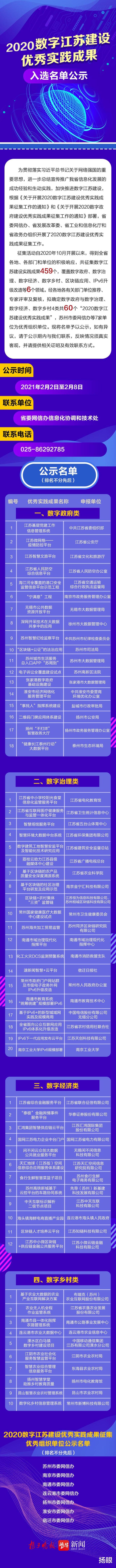 2020數(shù)字江蘇建設(shè)優(yōu)秀實(shí)踐成果入選名單公示
