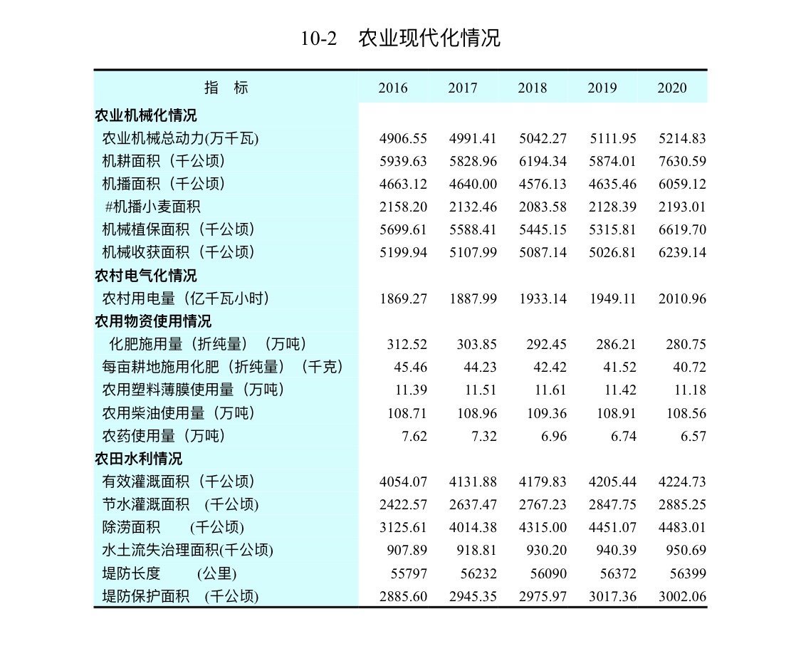 得益于農(nóng)業(yè)現(xiàn)代化的不斷推進,農(nóng)業(yè)機械化水平進一步提升——2020年江蘇農(nóng)業(yè)機械化總動力為5214.83萬千瓦,機耕面積近五年首次突破7000千公頃,達到了7630.59千公頃;機播面積也再創(chuàng)新高總面積達到6059.12千公頃,約為2019年機播面積的140%。