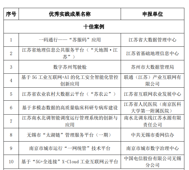 記者了解到,為進(jìn)一步總結(jié)推廣江蘇經(jīng)濟(jì)社會數(shù)字化轉(zhuǎn)型發(fā)展的成功經(jīng)驗(yàn)和生動實(shí)踐,促進(jìn)提升數(shù)字經(jīng)濟(jì)發(fā)展水平,助力網(wǎng)絡(luò)強(qiáng)省、數(shù)字江蘇、智慧江蘇建設(shè),省委網(wǎng)信辦會同省發(fā)展改革委、省工業(yè)和信息化廳、省政務(wù)辦、省通信管理局聯(lián)合組織開展2023數(shù)字江蘇建設(shè)優(yōu)秀實(shí)踐成果征集工作。經(jīng)各地各部門評審?fù)扑]、預(yù)審、專家評審、集中評議及復(fù)核公示,80個(gè)項(xiàng)目入選2023數(shù)字江蘇建設(shè)優(yōu)秀實(shí)踐成果,其中“一碼通行—‘蘇服碼’應(yīng)用”等10項(xiàng)申報(bào)成果為“十佳”案例。省自然資源廳、南京市委網(wǎng)信辦等12個(gè)單位被評為優(yōu)秀組織單位。