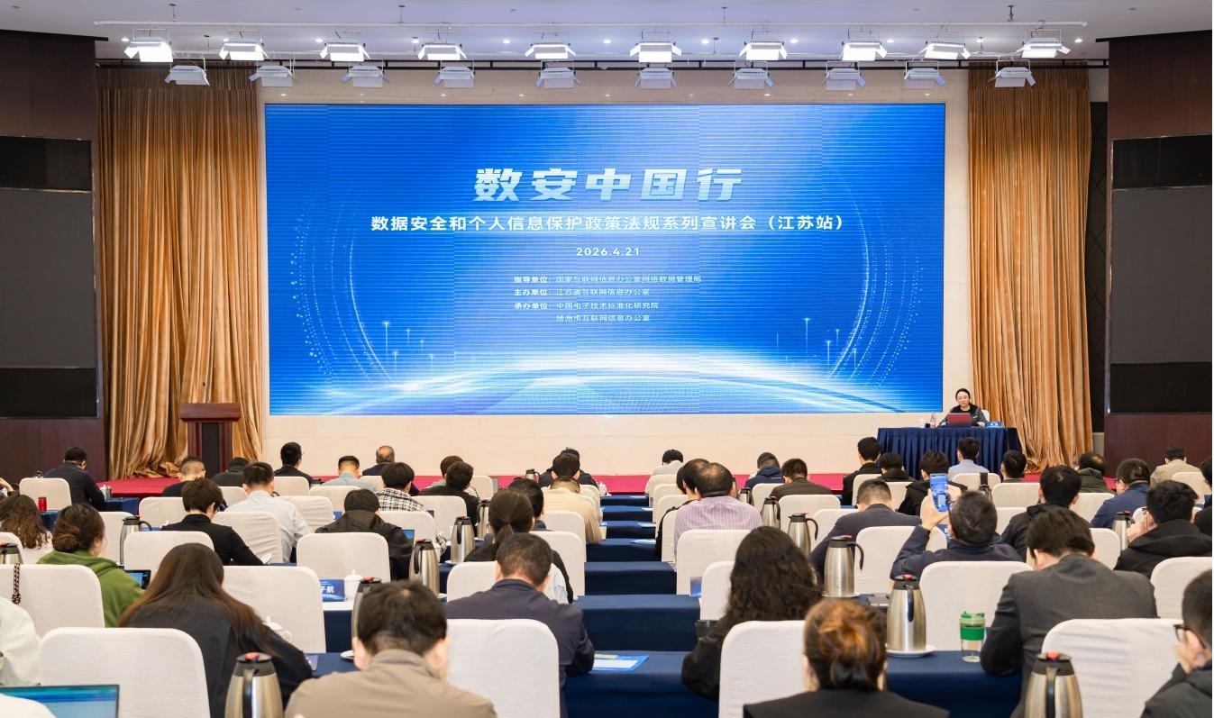 為深入貫徹《數(shù)據(jù)安全法》《個人信息保護法》《網(wǎng)絡(luò)數(shù)據(jù)安全管理條例》等法律法規(guī),加快推動相關(guān)政策法規(guī)落地落實,提升有關(guān)主管部門、企業(yè)機構(gòu)數(shù)據(jù)安全和個人信息保護能力水平,4月21日,“數(shù)安中國行”2026年數(shù)據(jù)安全和個人信息保護政策法規(guī)系列宣講會(江蘇站)在揚州成功舉辦。本次宣講會由國家互聯(lián)網(wǎng)信息辦公室網(wǎng)絡(luò)數(shù)據(jù)管理局指導,江蘇省互聯(lián)網(wǎng)信息辦公室主辦,中國電子技術(shù)標準化研究院、揚州市互聯(lián)網(wǎng)信息辦公室承辦。