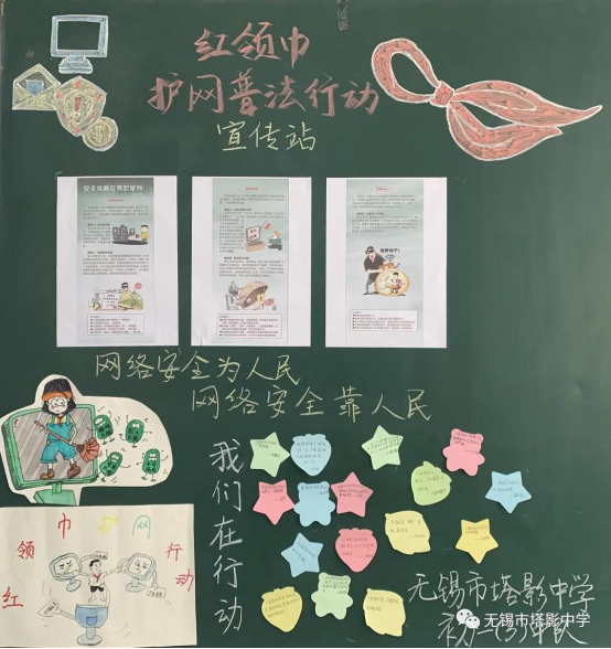 作為紅領(lǐng)巾護(hù)網(wǎng)普法行動(dòng)試點(diǎn)學(xué)校,無(wú)錫市塔影中學(xué)正在結(jié)合學(xué)校實(shí)際情況,以“全面宣傳、廣泛調(diào)查、精準(zhǔn)規(guī)范”為目標(biāo),開(kāi)展青少年護(hù)網(wǎng)普法行動(dòng)。邀請(qǐng)無(wú)錫市公安局網(wǎng)絡(luò)安全保衛(wèi)支隊(duì)二大隊(duì)的江浩同志,介紹宣講典型案例。同時(shí),充分利用教室內(nèi)團(tuán)隊(duì)角、黑板報(bào)、校園宣傳板等陣地開(kāi)辟網(wǎng)安園地專(zhuān)欄,收集展示紅領(lǐng)巾們的護(hù)網(wǎng)發(fā)言,爭(zhēng)做“網(wǎng)安”宣傳者與踐行者。