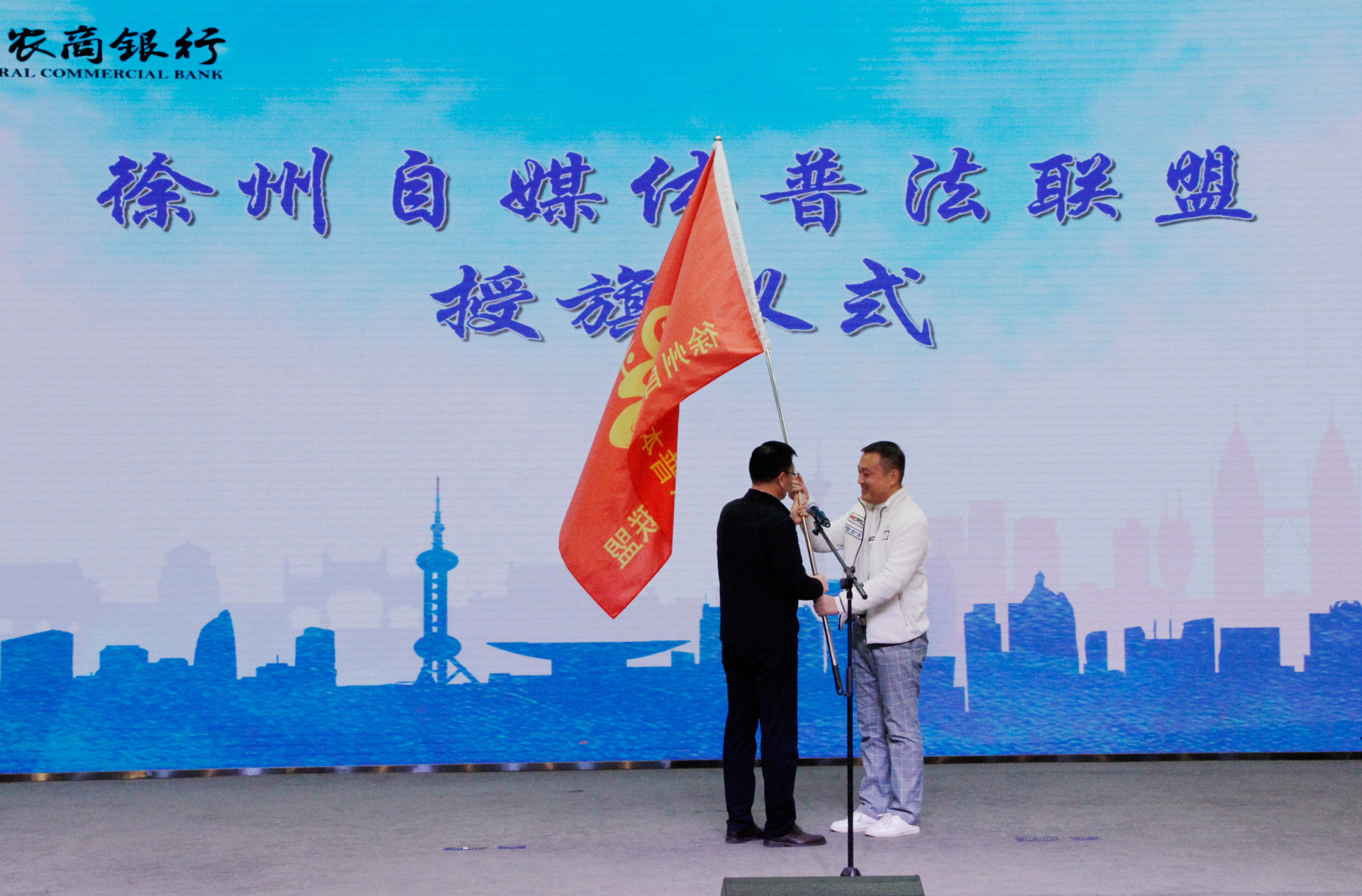 1月22日,在徐州農(nóng)商銀行三樓多功能報告廳市舉辦徐州自媒體普法聯(lián)盟成立儀式,徐州市司法局黨組書記、局長曹柱生向自媒體代表“豬屁登”IP創(chuàng)始人魏亞授旗。徐州市委依法治市辦、市委網(wǎng)信辦、市法宣辦、市司法局、徐州農(nóng)商銀行相關(guān)負責(zé)人參加活動。