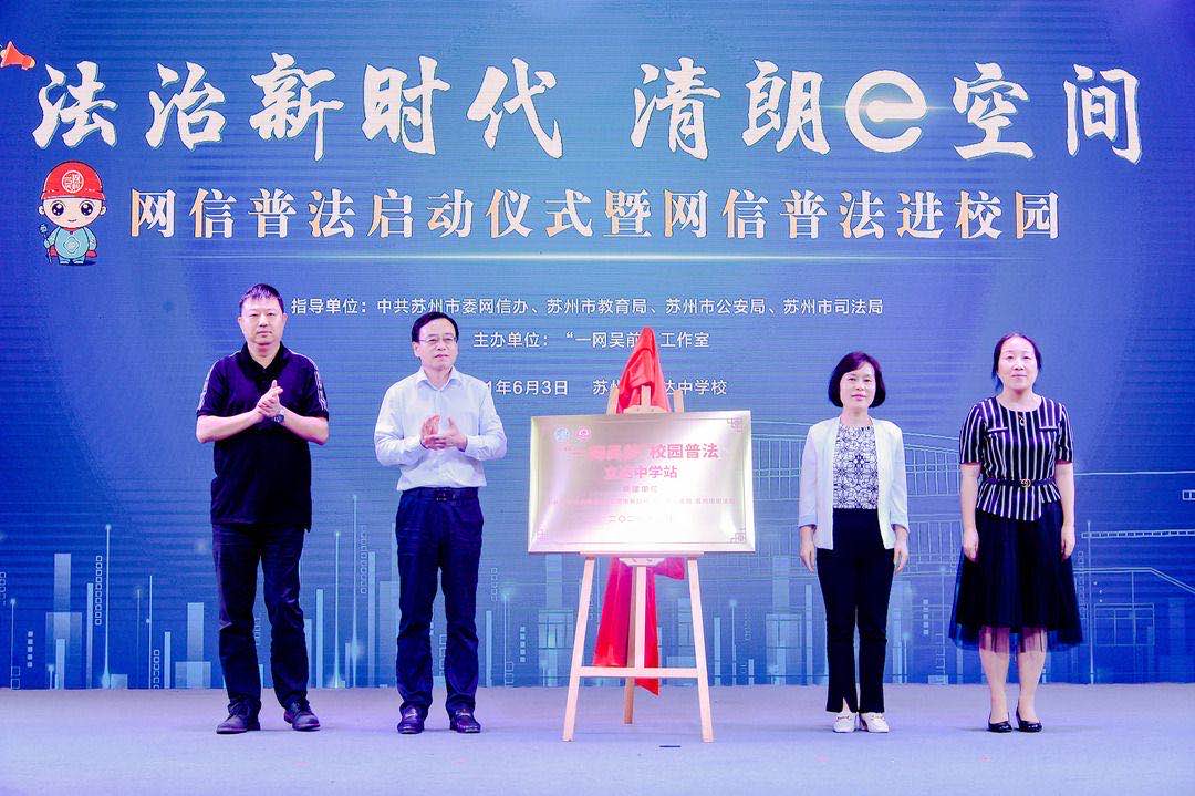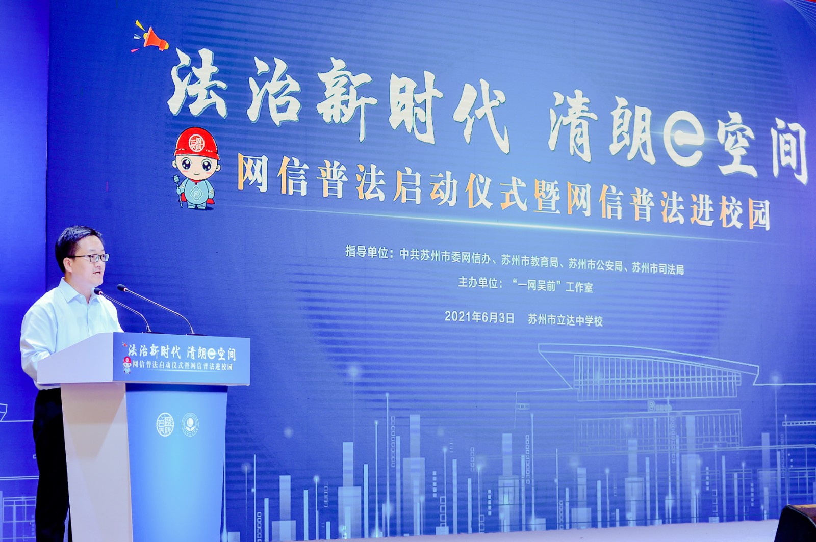 為進(jìn)一步提升網(wǎng)信普法水平,推動全市法治宣傳教育工作深入開展,6月3日,“一網(wǎng)吳前”蘇州市網(wǎng)信普法啟動儀式暨網(wǎng)信普法“進(jìn)校園”活動,在蘇州市立達(dá)中學(xué)校舉行。