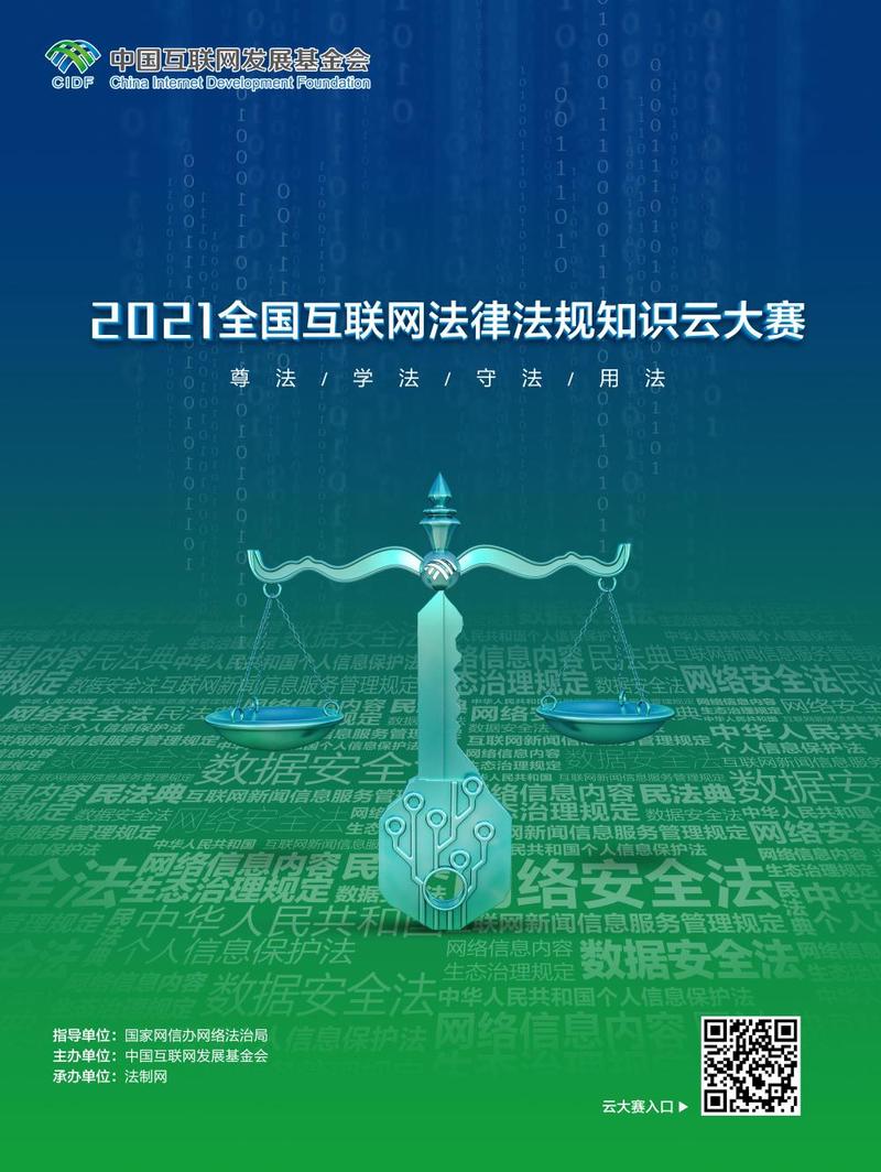 由國(guó)家網(wǎng)信辦網(wǎng)絡(luò)法治局指導(dǎo)、中國(guó)互聯(lián)網(wǎng)發(fā)展基金會(huì)主辦、法制網(wǎng)承辦的“2021全國(guó)互聯(lián)網(wǎng)法律法規(guī)知識(shí)云大賽”將于11月23日正式啟動(dòng)。本次競(jìng)賽活動(dòng)歷時(shí)一個(gè)月,全國(guó)互聯(lián)網(wǎng)從業(yè)人員和網(wǎng)民可通過(guò)關(guān)注“法制網(wǎng)”微信公眾號(hào)參與答題。云大賽期間,每天隨機(jī)抽取獲獎(jiǎng)?wù)呓o予獎(jiǎng)勵(lì),云大賽結(jié)束后還將進(jìn)行總結(jié)發(fā)布活動(dòng)。