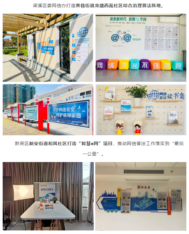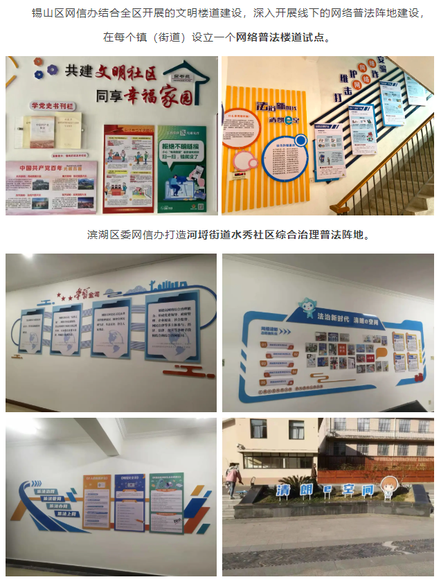 指導(dǎo)惠山區(qū)網(wǎng)信辦在洛社鎮(zhèn)張鎮(zhèn)橋村打造“普法e線”桃娃主題普法陣地,發(fā)展百名網(wǎng)信普法樓道長,開展“網(wǎng)信普法‘鎮(zhèn)’能量”品牌活動(dòng)。