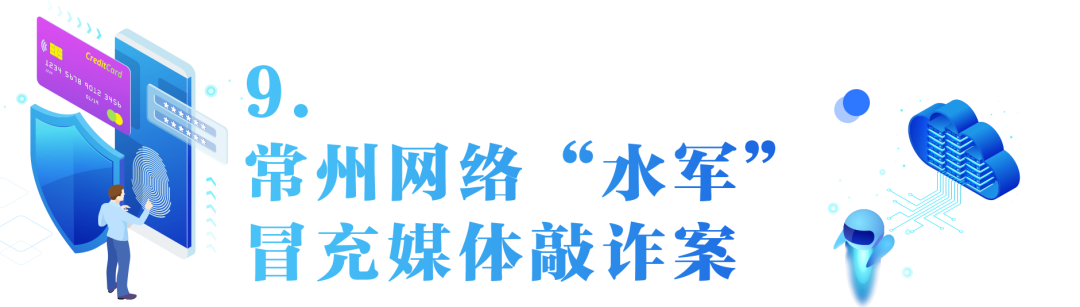 2020年1月,常州公安機關(guān)打掉一個網(wǎng)絡(luò)“水軍”團(tuán)伙,抓獲犯罪嫌疑人18名,扣押作案設(shè)備39部,繳獲虛假證件50余本,關(guān)停非法“水軍”網(wǎng)站20家,依法取締“人民日報社分部”等非法新聞機構(gòu)5個。查明自2018年11月以來,該團(tuán)伙成立南京紫悅云文化傳媒有限公司,租用境外服務(wù)器,冒充人民日報等新聞媒體,開設(shè)《人民日報社中國零距離網(wǎng)》等虛假網(wǎng)站,在江蘇、安徽、上海等地,以曝光環(huán)保、拆遷、執(zhí)法不規(guī)范等問題為由,向相關(guān)單位索要錢財。該團(tuán)伙累計40余起,敲詐金額達(dá)200余萬元。2020年8月11日,常州市武進(jìn)區(qū)人民法院依法對主犯張某明等12人分別判處七個月至五年不等有期徒刑并處罰金。
